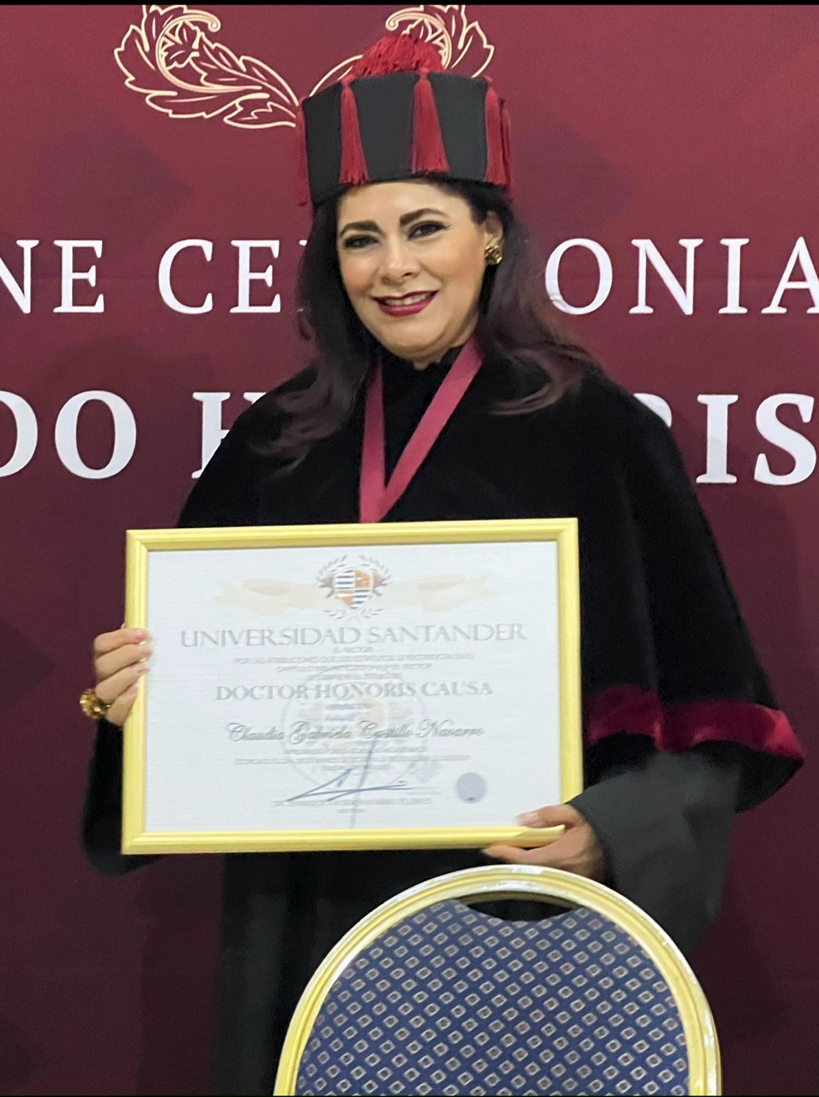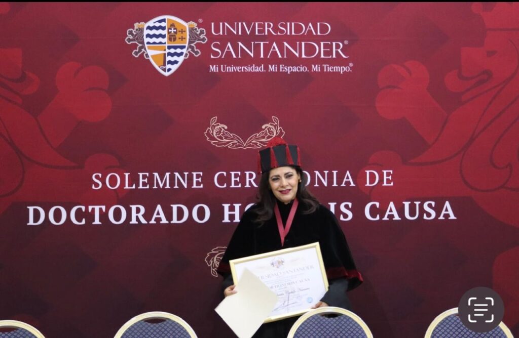 El pasado martes 19 de marzo, en una ceremonia protocolaria celebrada en el auditorio de la Cámara Nacional de Comercio de la Ciudad de México (CANACO), la periodista Gabriela Castillo fue reconocida con el Doctorado Honoris Causa, otorgado por la Universidad Santander en colaboración con ALPES. Este reconocimiento honra a individuos de méritos extraordinarios.