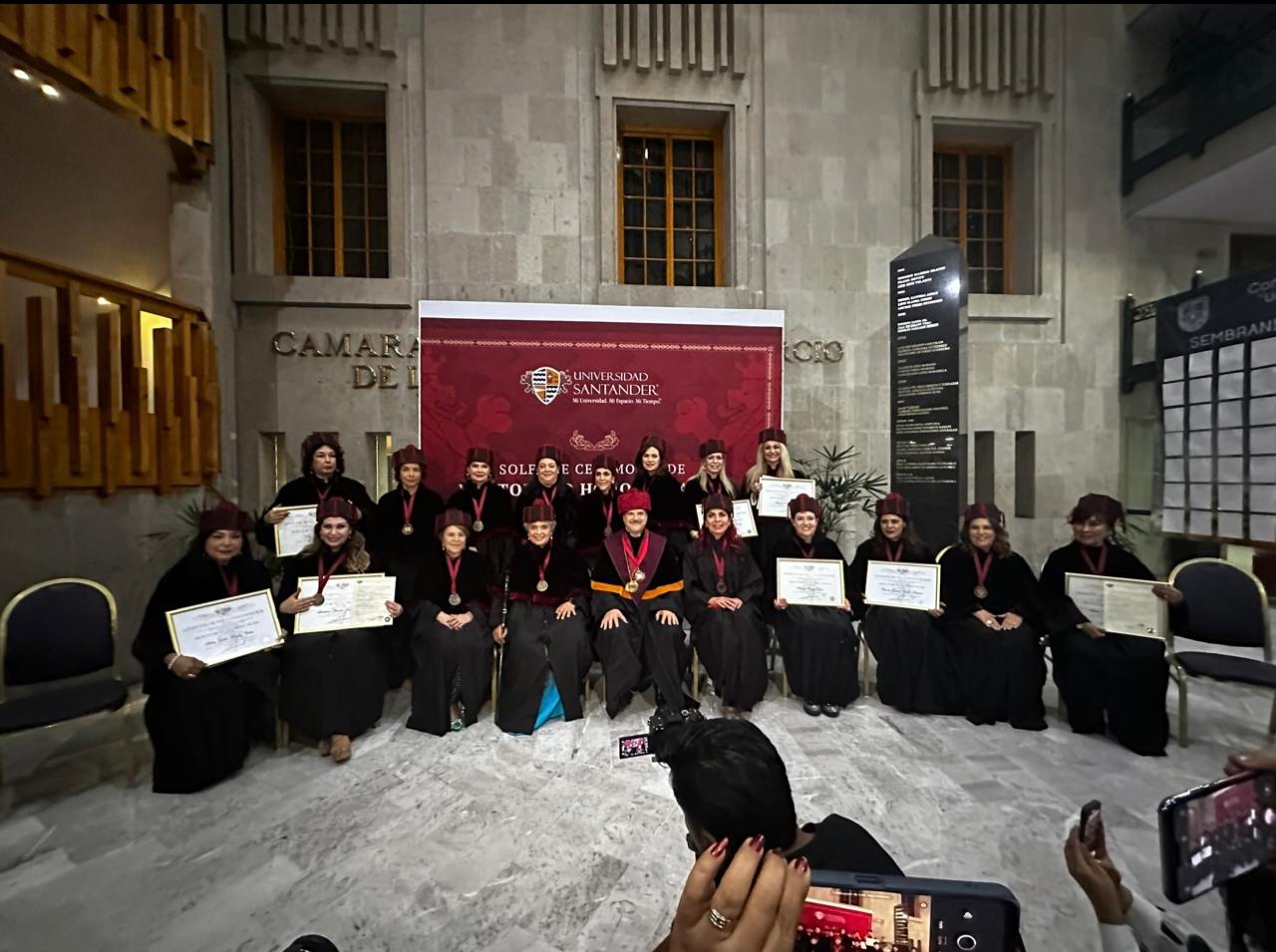 La entrega de estos doctorados refleja el compromiso de la Universidad Santander encabezada por el rector Enrique Navarro con la celebración de logros excepcionales en diversos campos. El evento, que comenzó a las 4 de la tarde, fue un tributo a los méritos de mujeres excepcionales, destacando sus contribuciones a la sociedad. La ceremonia fue muy emotiva, subrayando la admiración por las galardonadas.