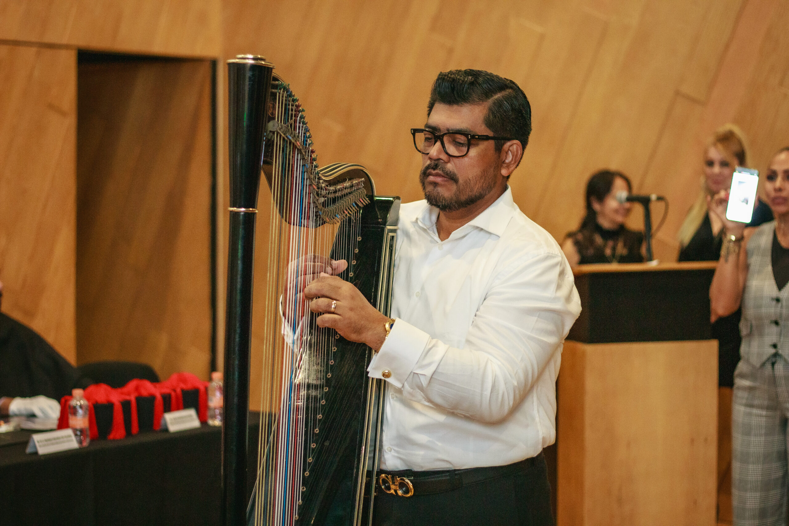 The event was marked by a full house, emotional video presentations, inspiring speeches, and a solemn atmosphere enriched by the accompaniment of a marching band and a harp performance.