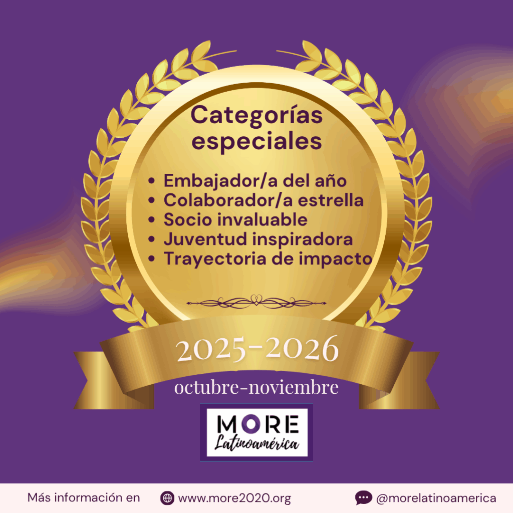 - Embajador/a del año: persona más comprometida en la difusión y representación de MORE latinoamérica en diversas actividades.